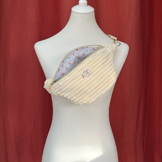 Sac Banane Enfant Fait Main velours côtelé blanc | L'Atelier d'Élise
