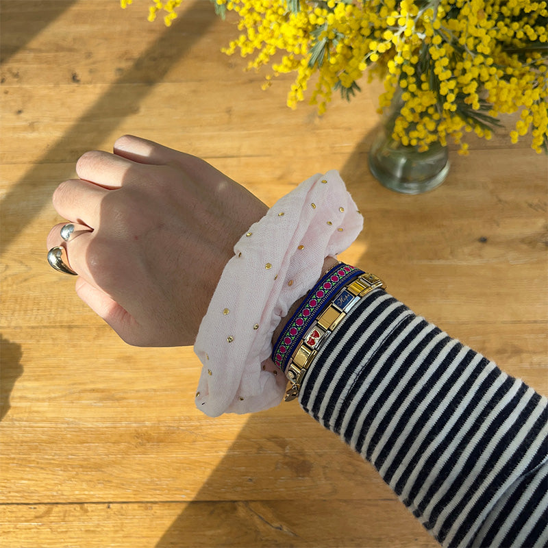 Au-delà de son utilité, le chouchou est devenu un véritable accessoire de mode. Portez-le au poignet pour ajouter une touche colorée à votre tenue !