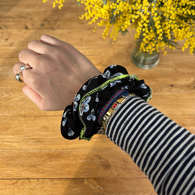 Sublimez vos coiffures avec ce chouchou entièrement cousu à la main dans mon atelier bordelais. Doux pour vos cheveux, élégant à porter et parfait au quotidien comme pour les occasions spéciales.