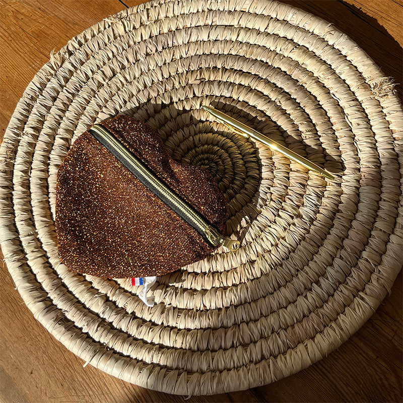Porte-monnaie coeur - Marron à paillettes